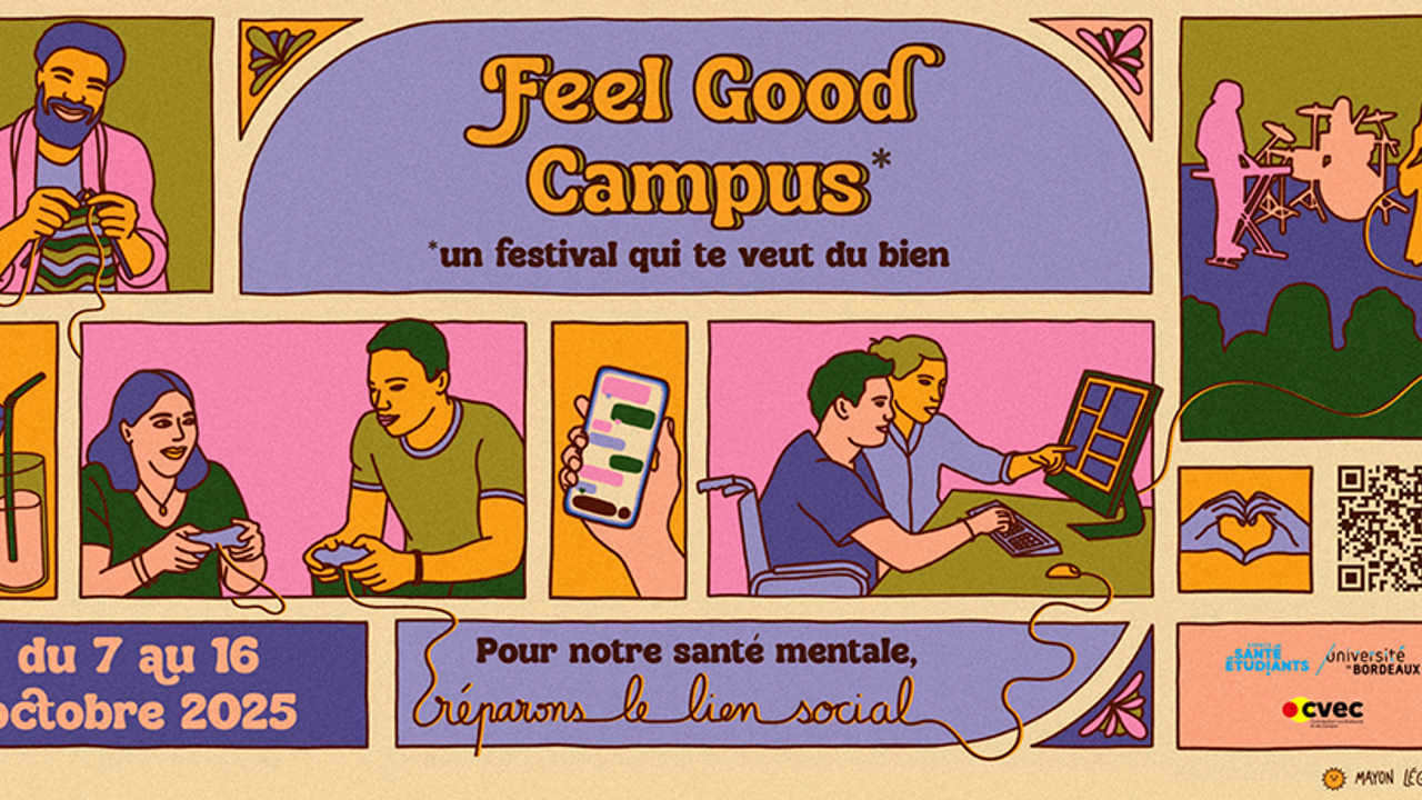Feel Good Campus, le festival qui te veut du bien est de retour, du 7 au 16 octobre sur les campus et dans Bordeaux pour parler santé mentale et en particulier des relations que l'on peut avoir avec les autres et avec soi.