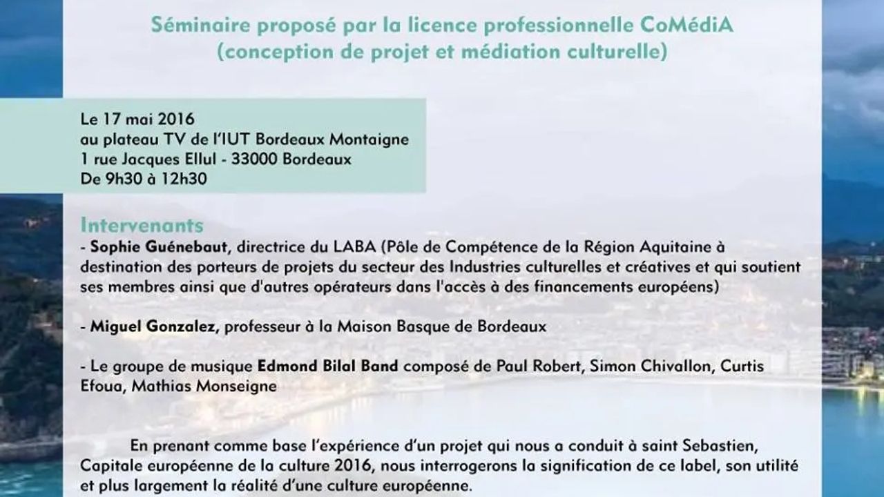 “Y a t-il une culture européenne ?”Séminaire CoMédiA09h3012h30Conception de projets et médiation artistique et culturelle